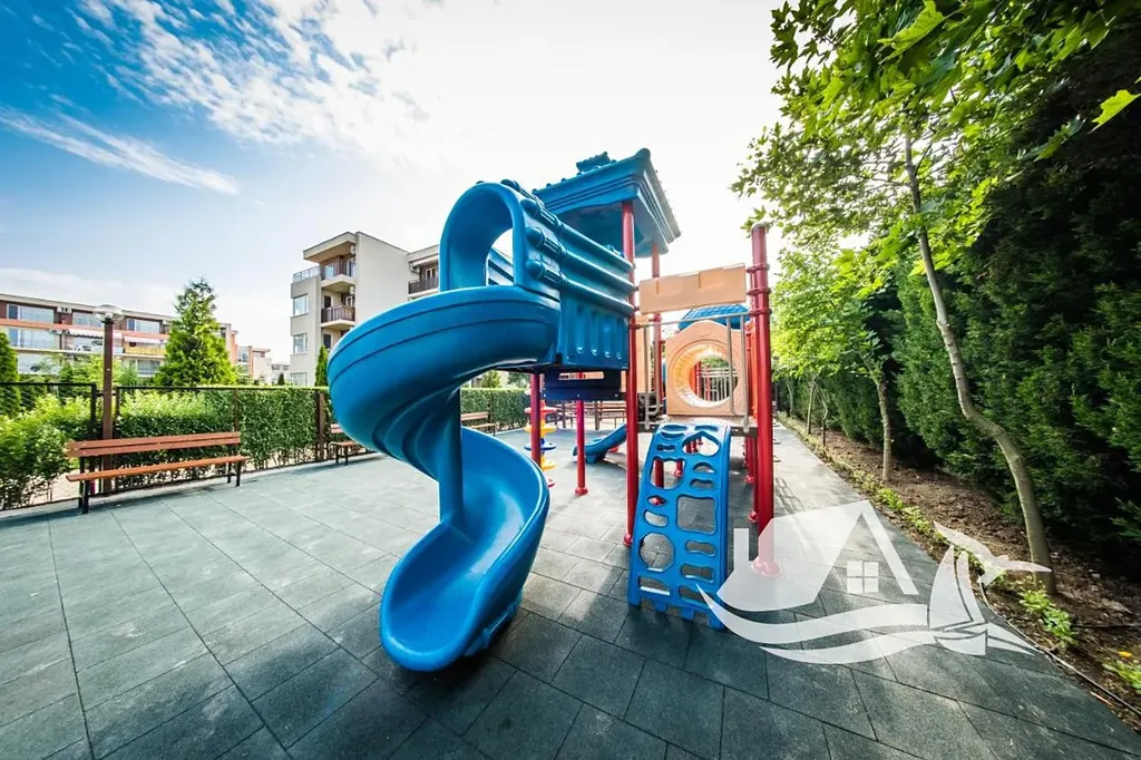 Pláž je vzdálena pouhých 800 metrů – ideální vzdálenost pro ranní procházku k moři i večerní posezení u západu slunce. V okolí najdete veškerou infrastrukturu: supermarket, restaurace, trhy, lékárny, sportoviště i zastávky veřejné dopravy. Aquapark je jen pár kroků od komplexu a starobylý Nessebar nabízí atmosféru, která zůstává v paměti.