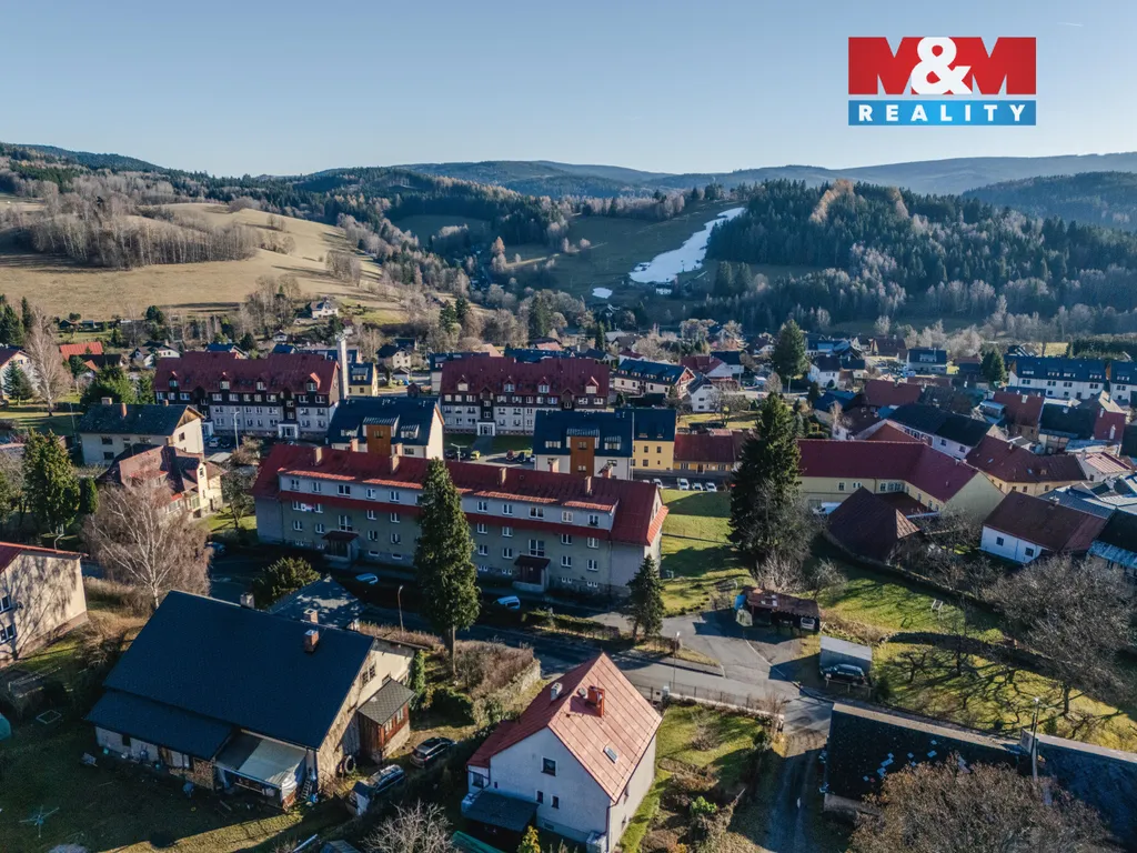 Nabízíme vám útulnou bytovou jednotku o dispozici 2+1, situovanou ve 3. NP cihlového domu v samotném centru Kašperských Hor, ul. Vimperská. Byt je v původním, avšak velmi udržovaném stavu a nabízí možnost úprav dle vlastních představ. K dispozici jsou společné prostory domu, vlastní sklepní kóje a především i zahrada u domu, která poskytuje příjemné místo pro relax či posezení. Vytápění je aktuálně řešeno kotlem na tuhá paliva, ohřev vody zajišťuje bojler. V roce 2026 je plánovaný přechod domu na dálkové centrální vytápění, které přinese vyšší komfort a pohodlí. Náklady na provoz bytové jednotky jsou nízké, což zajišťuje velmi výhodné a úsporné bydlení. Kašperské Hory nabízí kompletní občanskou vybavenost a jsou vyhledávanou lokalitou pro milovníky turistiky, letních i zimních sportů. Díky tomu je byt vhodný jak pro trvalé bydlení, tak rekreaci, a představuje i zajímavou investiční příležitost. Pro více informací se na nás neváhejte obrátit. Vřele doporučujeme prohlídku nemovitosti
