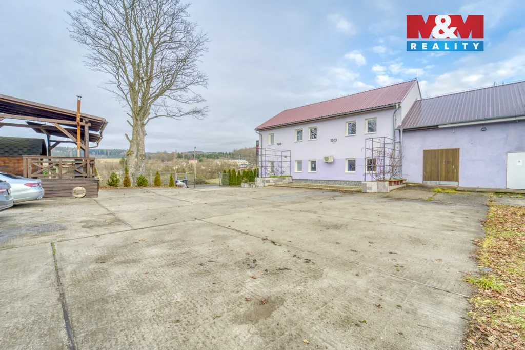 Na ubytovací část navazuje Objekt B – prostorná hala o užitné ploše přes 346 m² s výrobními a skladovými prostory, kanceláří, kuchyňkou a technickým zázemím s kotlem na tuhá paliva. Prostory jsou vhodné pro výrobu, logistiku i zázemí firmy. Součástí areálu je finská sauna z cedrového dřeva a venkovní vířivka, které objektu dodávají další hodnotu. Pozemek 1 941 m² nabízí parkování, přístřešky a pohodlný příjezd po asfaltové komunikaci. Lokalita je klidná, pouhých 10 minut od Karlových Varů.