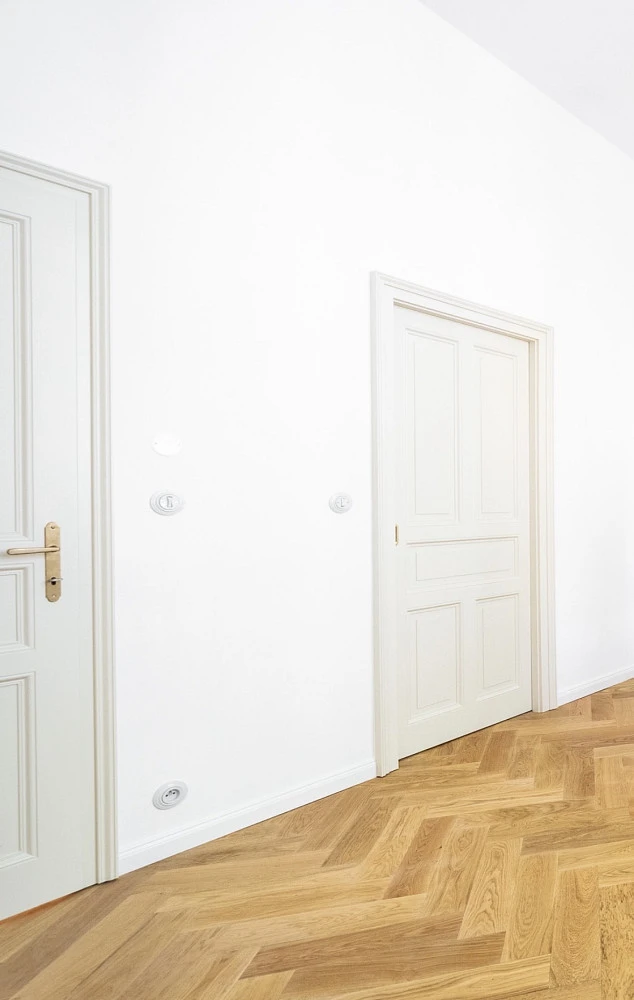 • Dřevěná dubová podlaha odpovídající historickému rázu budovy