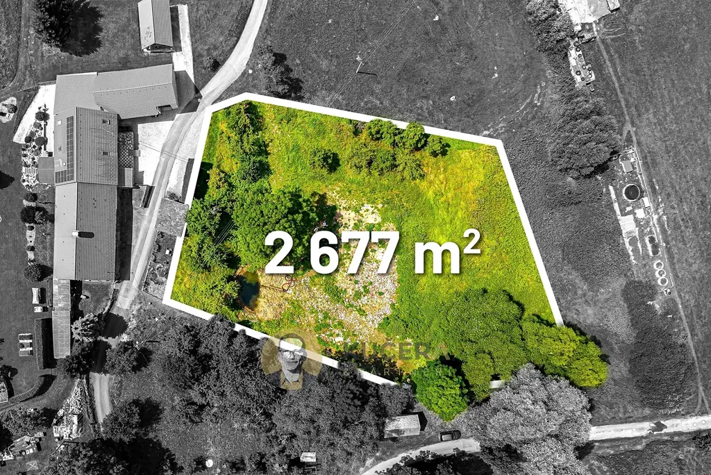 Nemovitost tvoří soubor tři na sebe navazujících pozemků o celkové výměře 2 677 m².
