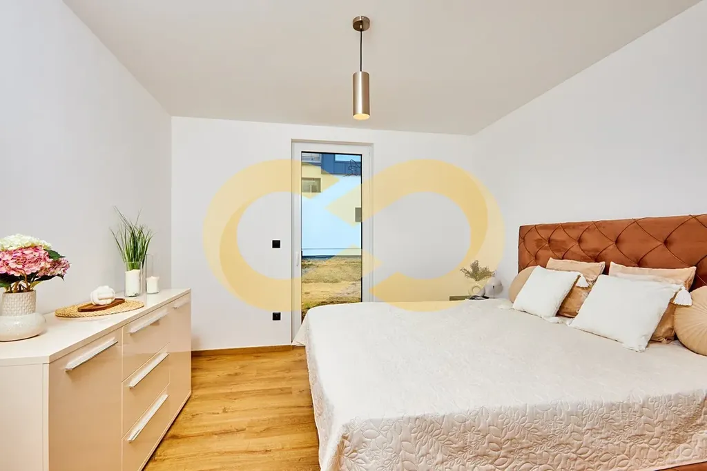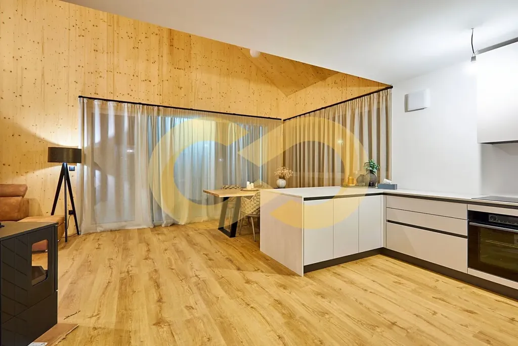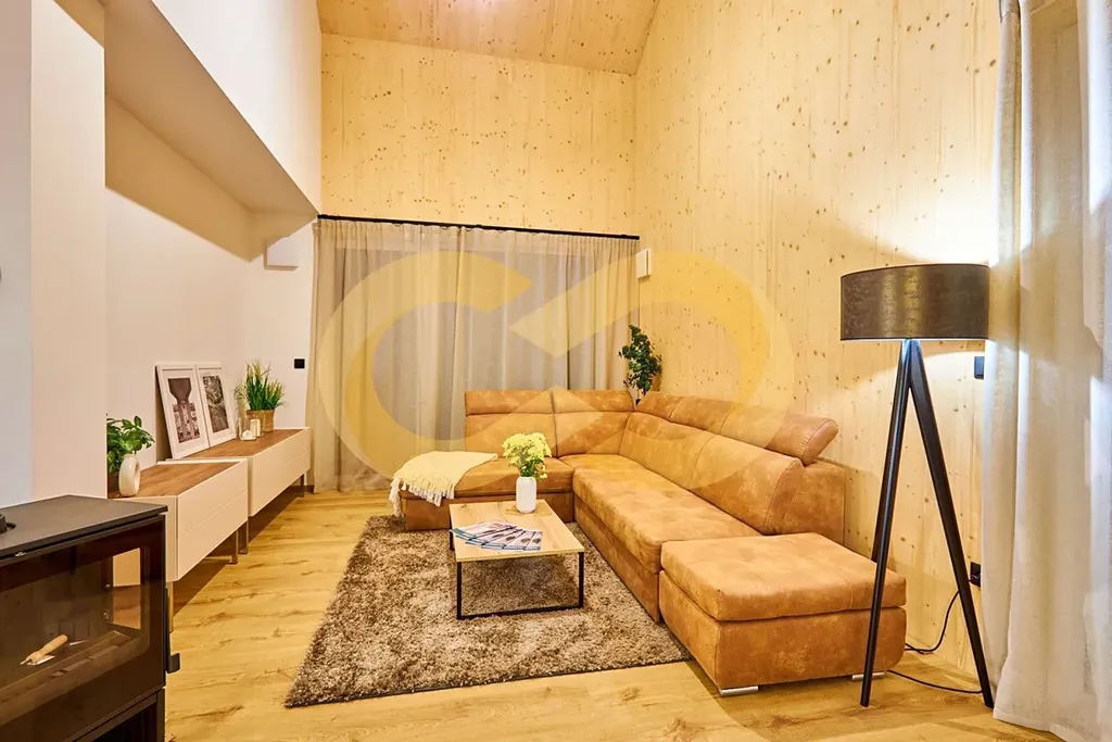 Jednopodlažní domy se skládají z prostorného obývacího pokoje s moderní kuchyní a jídelnou, hlavní ložnice a dvou pokojů, koupelny s vanou a WC i druhé samostatné toalety. Nechybí ani praktická šatna a technická místnost.