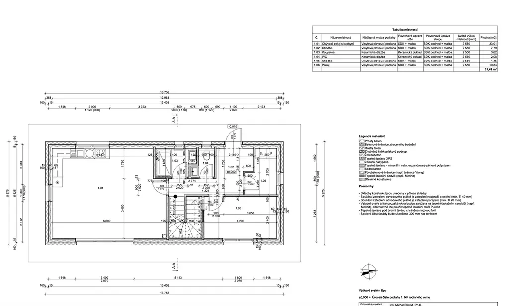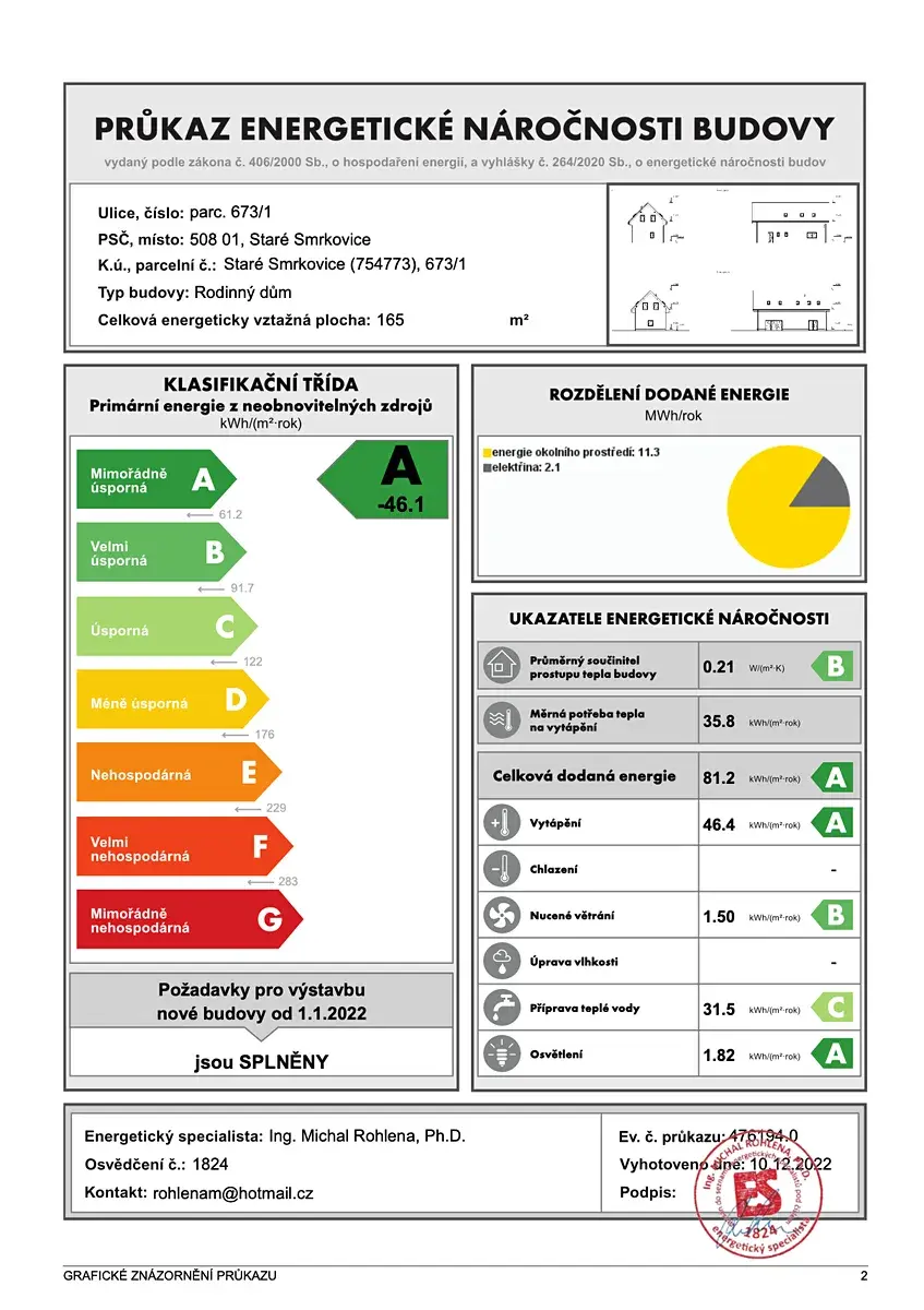K pozemku patří platné stavební povolení, kompletní projektová dokumentace i energetický štítek s mimořádně úspornou třídou A. Díky tomu můžete začít stavět okamžitě, bez zdlouhavého vyřizování na úřadech.
