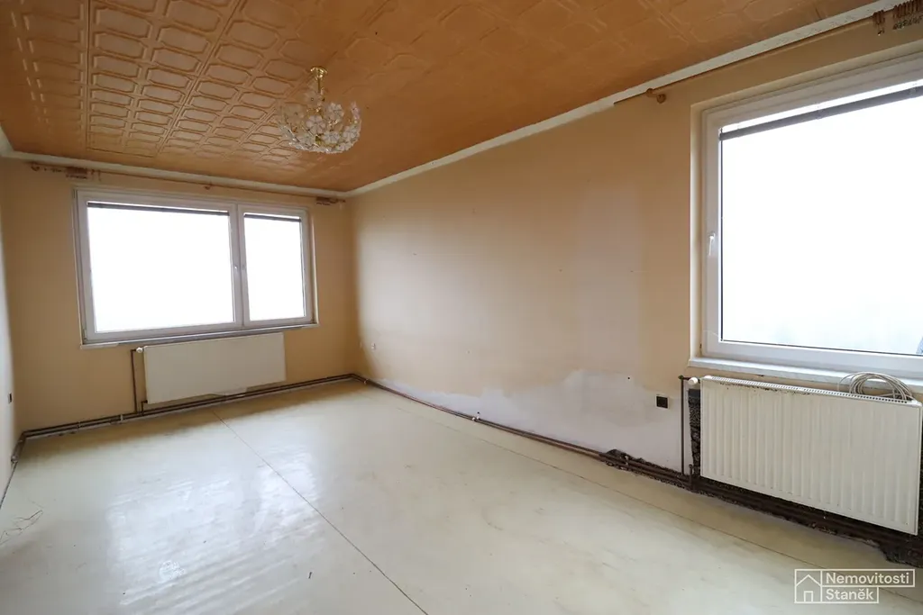 Prodám byt v osobním vlastnictví o dispozici 4+1 s garáží v obci Dírná. V bytě jsou nová plastová okna. Topení je zajištěno zánovním elektrokotlem s rozvodem do všech pokojů. Obytná část o výměře necelých 80 m2 se skládá z kuchyně, obývacího pokoje, ložnice, dvou dětských pokojů, koupelny, WC, předsíně a lodžie. Dalším příslušenstvím bytu jsou dva sklepy a garáž o celkové velikosti 25,5 m2, umístěné v technickém podlaží domu. Odpady jsou napojeny na obecní kanalizaci a voda je rozvedena z obecního vodovodu. Byt je umístěn ve 2. podlaží a náleží k němu spoluvlastnický podíl na společných částech domu. Plná občanská vybavenost se nachází v 7,5 km vzdálené obci Kardašova Řečice nebo v Soběslavi (13,5 km) popřípadě v Táboře (27 km). Doporučuji prohlídku.