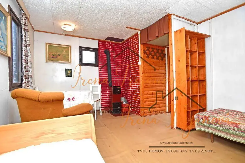 Chata je postavena ve svahu na zděné podezdívce, nepodsklepená, střecha sedlová. V přízemí se nachází malá kuchyňka s obývacím pokojem se vstupem na terasu orientovanou na JZ a koupelna s vanou. Do patra se dostanete z druhé části chaty, kde se nachází pokoj s výhledem do krajiny a WC. Na podlaze je lino, okna jsou nová dřevěná. Vytápění je řešeno kamny a přímotopy, odpad septikem. Elektroinstalace 220 i 380. Kopaná studna je společná pro 3 chaty s dostatečným množstvím vody. Teplou vodu zajišťuje průtokový ohřívač. Orientace oken na východ, jih a západ. Svažitý pozemek je terasovitě řešený, najdete zde vzrostlé stromy a skalky, zahradní domek a dřevník. Možnost parkování u pozemku. Příjezd po místní komunikaci, která je asfaltová.