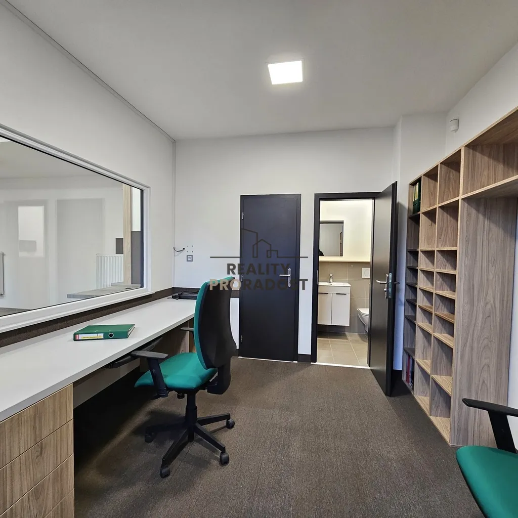 K dispozici je praktická kuchyňka s myčkou a kompletními spotřebiči, kde si můžete odpočinout během pracovních pauz a užít si občerstvení. Pro ještě větší pohodlí je k dispozici šatna, která zahrnuje toaletu a umyvadlo, tak máte vše, co potřebujete k pohodlné a efektivní práci v pohodlí a klidu.