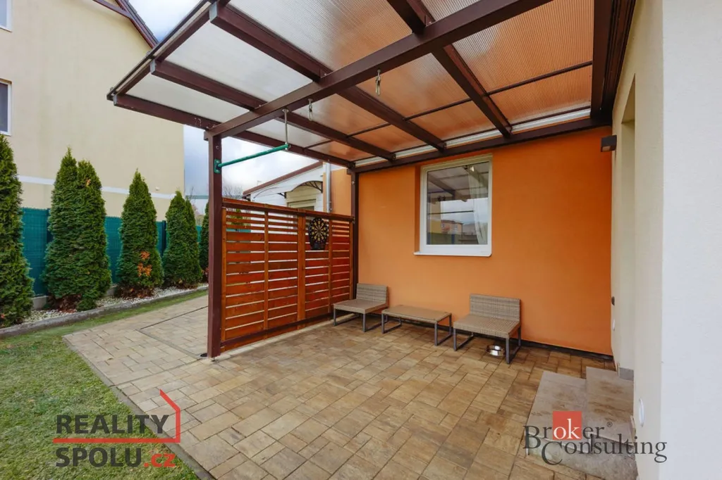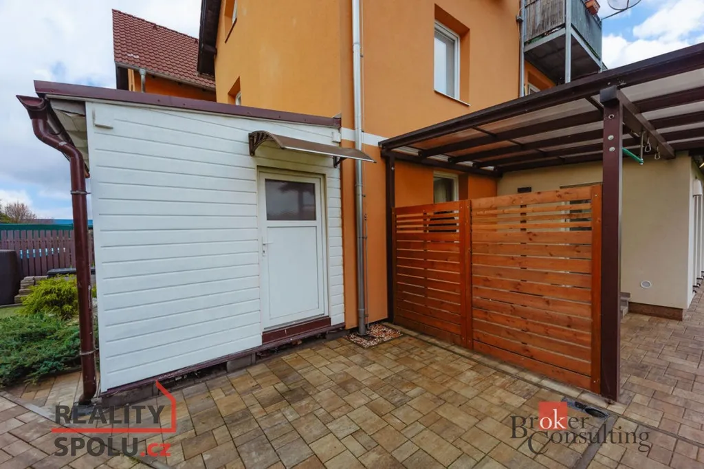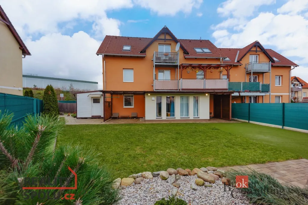 Hledáte bydlení na okraji hlavního města, nechce se vám na sídliště, ale přesto chcete sobě a své rodině dopřát vlastní zahradu a přitom nezruinovat rozpočet? Chcete si dopřát veškerou občanskou vybavenost, včetně škol, školek, lékařské péče, sportovních a kulturních zařízení, cyklostezek, lesů, parků, restaurací a kaváren? Nabízíme k prodeji byt ve výborném stavu, umístěný v 1. nadzemním podlaží o dispozici 4+1 s vlastní zahradou, krytou terasou, dílnou, sklepní kójí a parkovacím stáním. K bytu dále náleží podíl na společné části zahrady z druhé části domu. Dům byl postaven v roce 2009 a je zateplen. Vytápění řešeno vlastní plynovou kotelnou, kombinací radiátorů a podlahového vytápění. V bytě je dodělána rekuperace. Energetický štítek třídy C. Na Václavském náměstí jste autem do 20 minut jízdy, pomocí MHD za 35 minut. Ideální bydlení na kraji Prahy, s vlastní zahradou, bez nutnosti časté a nákladné údržby za rozumnou cenu. S vyřízením případného úvěru na bydlení vám rádi pomůžeme.