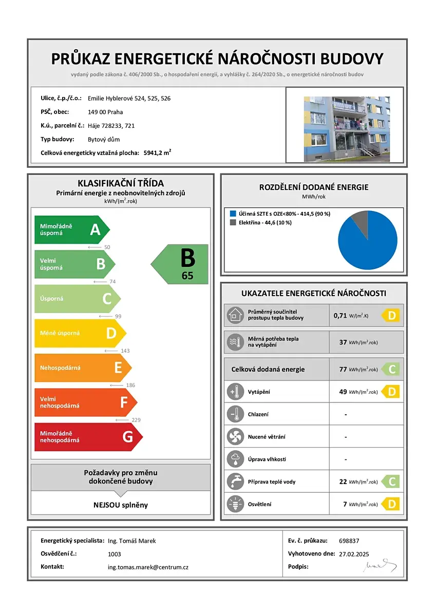 65 kWh/m2 za rok