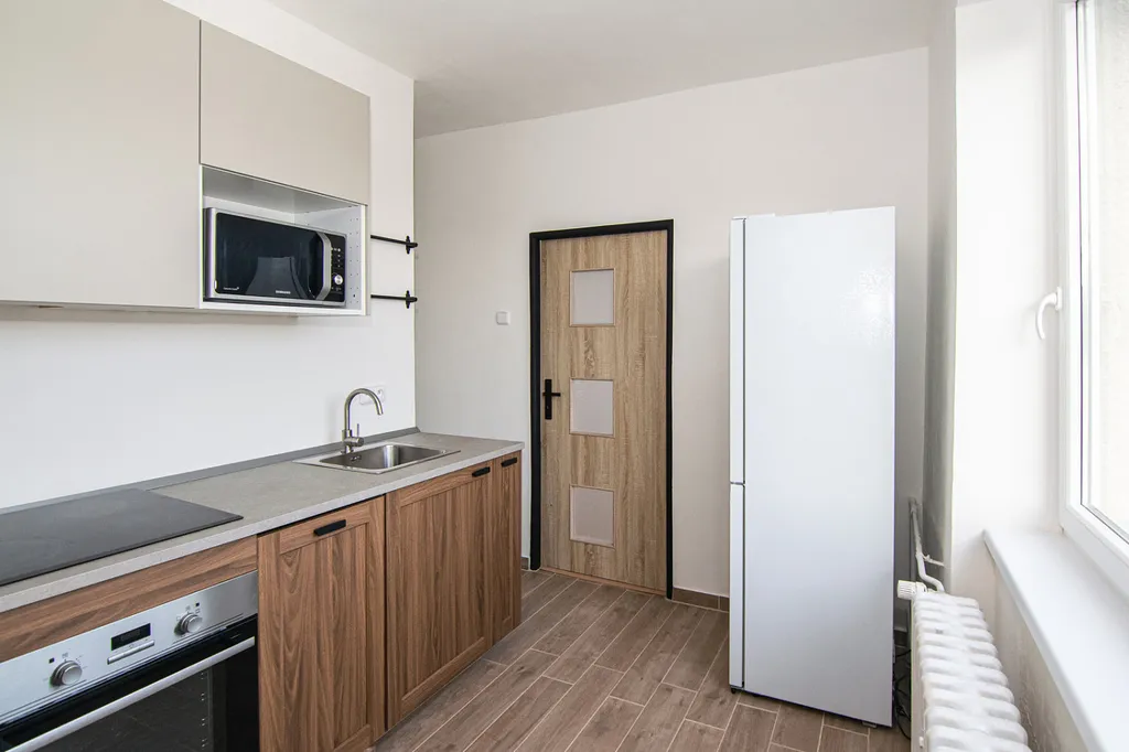 V kuchyni byla instalována nová moderní kuchyňská linka s indukční varnou deskou, troubou na pečení, mikrovlnnou troubou a přípravou na myčku. Je zde volně stojící lednice s mrazákem. Do kuchyně se dá umístit menší jídelní stůl.