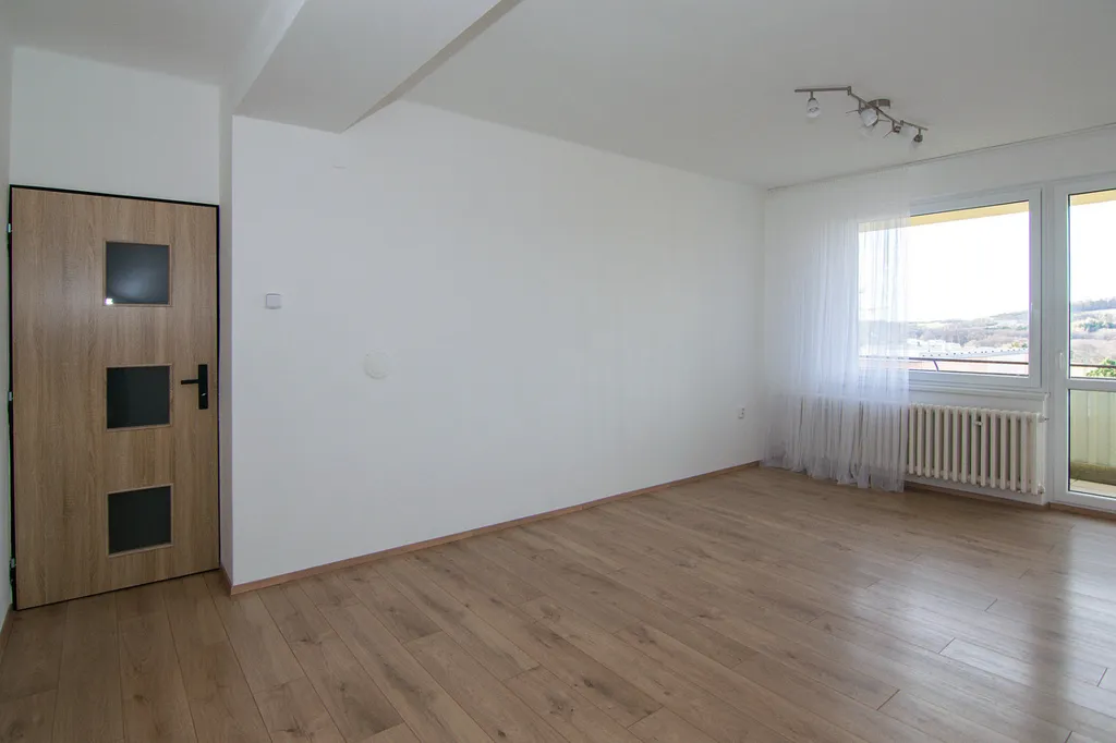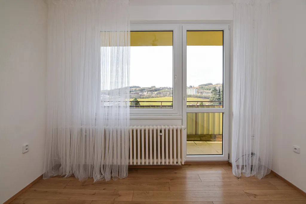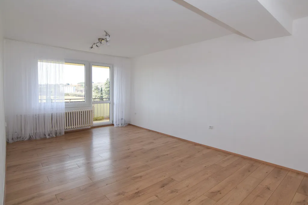 Byt je světlý, vzdušný a díky umístění v posledním patře má krásné výhledy do širokého okolí.