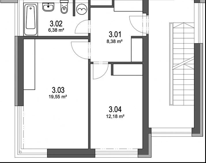 This modern studio is on the 2nd floor and is partially furnished - kitchen with appliances, built-in wardrobe, complete lighting equipment, external electric or interior blinds in the windows, air conditioning/heat pump. The studio includes 1 parking space on a fenced plot and 1 storage room. The house is low-energy, heating with an AIR/AIR heat pump with additional electric floor heating, water heating with an electric boiler. Air conditioning is also a heat pump – it cools, heats and dehumidifies.