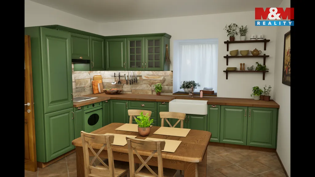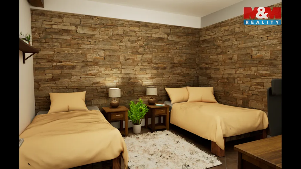 Tento byt se nachází v 1.NP rekonstruovaného domu, ve kterém je více bytů venkovského stylu. Byt má 65 m2 a je tu vstupní chodba, obývací pokoj s kuchyňským koutem, dvě ložnice, koupelna s vanou, umyvadlem a WC, dále pak komora. Orientace bytu je východ a západ. V bytě byly opraveny a ponechány původní opukové zdi, v obývacím pokoji jsou i dřevěné trámy, které umocňují venkovskou atmosféru bydlení.