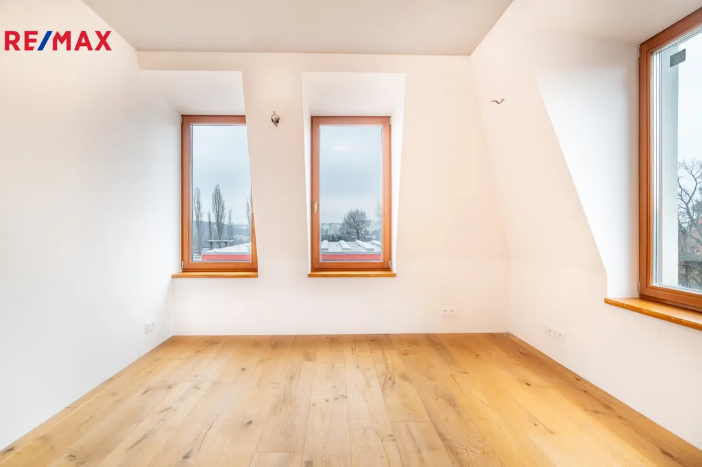 Nabízíme k pronájmu výjimečně prostorný a zcela nový byt 5+kk, který zabírá celé poslední podlaží moderní vily v jedné z nejklidnějších a nejpříjemnějších částí Prahy 4 – Krči, v ulici U Krčské vodárny. Vila stojí v tiché rezidenční zástavbě a kombinace soukromí, klidu a výborné dostupnosti do centra z ní činí ideální místo pro komfortní bydlení. Přízemí domu obývá majitel a horní dvě patra jsou určena k samostatnému užívání.