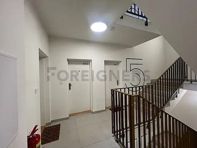 Byt je plně zařízen moderním a nadstandardním nábytkem – pohodlná postel, křeslo, TV stolek a vestavěná skříň. Kuchyňská linka je kompletně vybavena spotřebiči (elektrická trouba, varná deska, lednice) i základním nádobím. K dispozici je také pračka. Prostorná a světlá chodba nabízí dostatek úložného prostoru díky vestavěné skříni.