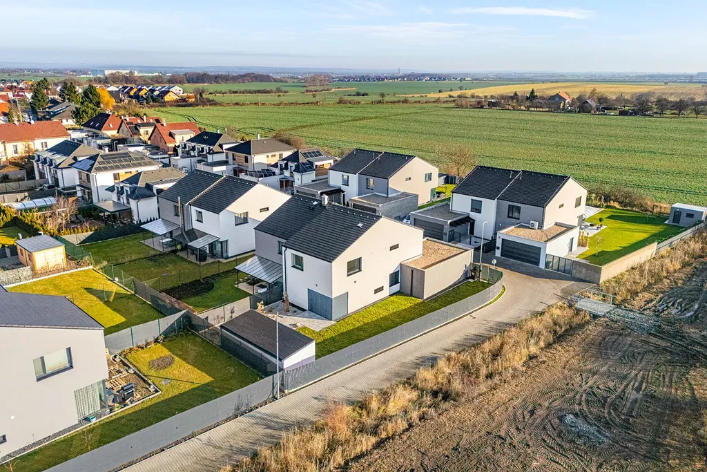 Nabízíme ke koupi novostavbu rodinného domu ve Zloníně. Dům byl kolaudovaný v roce 2022 a majitelé řešili jeho realizaci v nejvyšší kvalitě s přihlédnutím k vlastním potřebám. V domě se nachází 5 ložnic, přičemž jedna je umístěna v přízemí domu společně s prostorným obývacím pokojem s kuchyňským koutem, koupelnou se sprchovým koutem a velkým šatním prostorem u vstupu. Další ložnice jsou koncipovány do prvního patra společně s koupelnou s vanou.