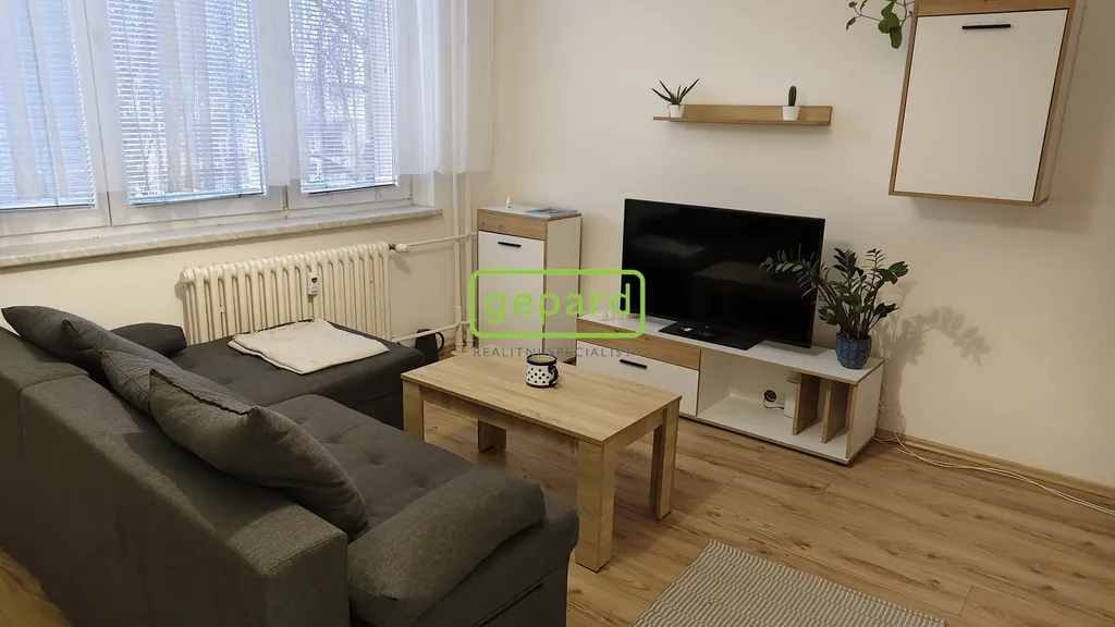 Byt je umístěný v 1.patře a je tvořen velkou předsíní, koupelnou se sprchou, samostatným WC, obývacím pokojem s odděleným kuchyňským koutem a ložnicí. Je kompletně vybaven veškerým nábytkem, pračkou a kuchyňskou linkou se spotřebiči (elektrická trouba, digestoř, mikrovlnná trouba, lednice s mrazákem, myčka). Vytápění a ohřev vody dálkový. V ceně nájmu je internetové připojení od O2.