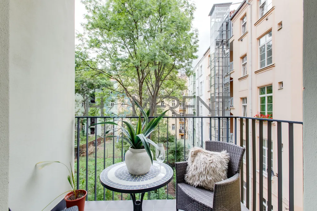 Součástí bytu je také ložnice s manželskou postelí, odkud můžete vyjít na malý, ale útulný balkon o rozloze 2 m², obrácený do klidného vnitrobloku. Perfektní prostor pro ranní kávu či večerní sklenku vína. Nechybí ani moderní koupelna se sprchovým koutem a pračkou. Celý byt pak dotváří krásné dřevěné parkety, které dodávají prostoru eleganci i teplo domova.