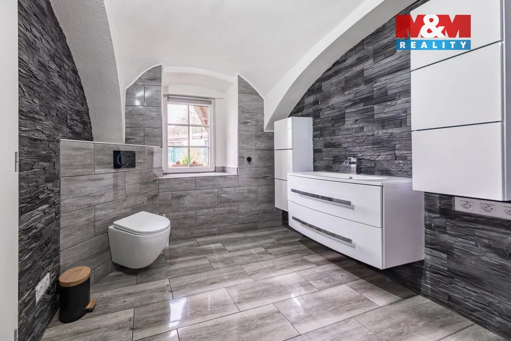 Nabízíme k prodeji prostorný dvoupodlažní rodinný dům o dispozici 5+1 v klidné části obce, po značné rekonstrukci, s oplocenou zahradou a pergolou s posezením. Užitná plocha domu činí 197 m² a je rozložena do dvou pater. V přízemí se nachází předsíň, velká koupelna propojená s WC, obývací pokoj se vstupem do kuchyně a také obrovská technická místnost, členitá a využívaná i místo sklepa. Schodištěm se dostaneme do patra, kde najdeme rozlehlou halu a z ní vstup do šatny, odtud do ložnice, dále prostorný dětský pokoj, pracovnu a vstup do původní garáže, odtud pak vstup na půdu. Tento prostor je přístupný i ze zahrady z druhé strany domu. V celém obytném přízemí je dlažba s podlahovým topením, v patře jsou dřevěné a plovoucí podlahy. Dům má plastová okna, je vytápěn tepelným čerpadlem a je napojen na vodu z řádu, střecha je také nová. Na pozemku je vlastní studna, která se využívá pro splachování WC. Přímo před domem je autobusová zastávka. Přijďte nasát atmosféru tohoto domu na prohlídku.