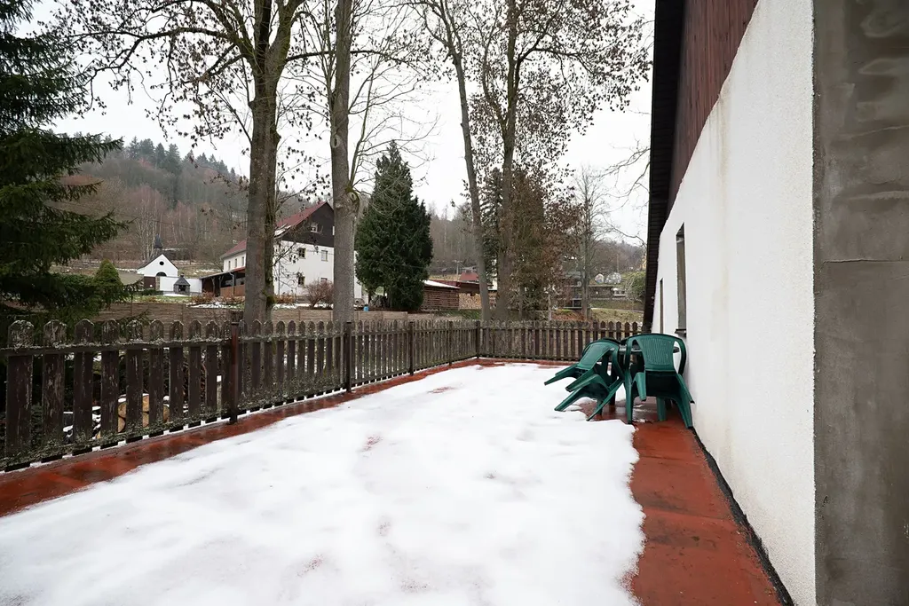 Nemovitost stojí na pozemku o celkové rozloze 1 412 m² se vzrostlými stromy, který nabízí soukromí a klid v přírodě. Rozlehlá zahrada je ideální pro odpočinek, zahrádkaření, dětské hřiště nebo další rozšíření. Parkování pro 5 vozů přímo u domu. Pozemek dále nabízí malý bazén a ohniště.