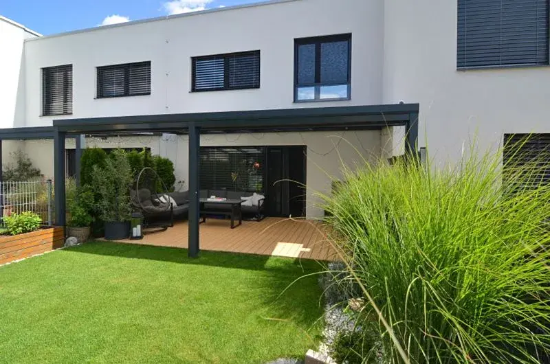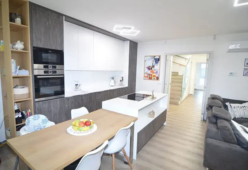 Ve výhradním zastoupení si Vám dovolujeme nabídnout velmi dobře řešenou, patrovou novostavbu řadového rodinného domu 4+kk, se zastřešenou terasou, okrasnou zahradou, garáží a 2x parkovací stání, s užitnou plochu 153m2, v obci Vestec, v nově vzniklé rezidenci "Vestec v zahradách", Praha západ. Jedná se o nemovitost, která je velmi vkusně a nadstandardně vybavená, ve všech pokojích klimatizace, zabezpečení Jablotron. Dispozice v přízemí: obývací pokoj propojený s kuchyňským a jídelním koutem, kuchyňská linka zhotovena truhlářem na míru se spotřebiči (indukční varná deska s vnitřním odsáváním, el. trouba a mikrovlnka (Bosch), vestavná lednice s mrazákem, myčka nádobí), pracovní deska z technického kamene Corian v kombinaci se sklem. Obývací pokoj s posuvnými balkonovými dveřmi se vstupem na zastřešenou terasu 22 m2,(hliník s mléčným polykarbonátem a s elektricky ovládaným zastíněním) a do zahrady a s orientací jihozápadní, toaleta s umyvadlem, šatna, komora a vchod do garáže. V patře jsou tří pokoje, v ložnici nábytek vč. vestavné skříně vyroben na míru, orientace pokojů JZ a SV. Koupelna s vanou a sprchovým koutem, toaleta, bidet 2x umyvadlo, zvlášť toaleta s umyvadlem, technická místnost s plynovým kondenzačním kotlem a zásobníkem teplé vody, prostorem pro pračku. Schodiště do patra obložené vinylem a zábradlí nerez a sklo. Na podlaze vinyl a dlažba. Dveře Sapeli. Okna plastová, trojskla a u všech oken a dveří předokenní, elektricky ovládané rolety, sítě proti hmyzu. Na zahradě nádrž (8m3) na dešťovou vodu. Bydlení nejen v dobré dopravní dostupnosti, v pěší dostupnosti stanice Bus na Metro Kačerov a Budějovická /cca 20 min./ nebo na Metro Opatov /15 min/, sjezd a nájezd na Pražský okruh s propojením na D1, D5 a Letiště /25 min/, ale především v blízkosti přírody a s možností sportovního vyžití: asfaltové cyklostezky s propojením do Průhonického parku, veřejné venkovní posilovny, několik dětských hřišť, fotbalové hřiště, prostor v obci pro koncerty a různé akce. Občanská vybavenost MŠ, ZŠ zajištění dopravy pro školáky, Obecní úřad, pošta, obchodní centrum, hypermarket Albert, Billa, JYSK, lékárna, bankomat, restaurace, cukrárna, kavárna. Hypotéku vám rádi pomůžeme vyřídit.