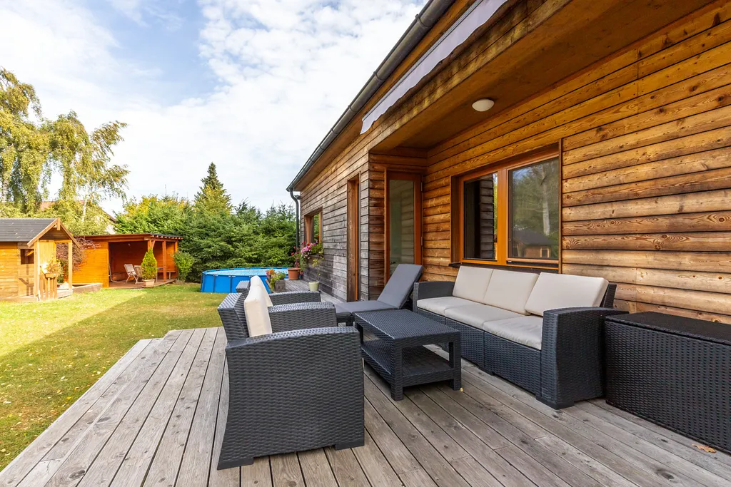 Ve výhradním zastoupení majitele nabízíme k prodeji dřevostavbu rodinného domu o dispozici 4+kk s garáží, terasou, venkovním bazénem, altánem a krásnou udržovanou zahradou v obci Mukařov - Srbín, okr. Praha - východ. Dům s důrazem na kvalitu použitých materiálů a provedených prací má zastavěnou plochu 156m² a užitnou plochu včetně terasy 184m².