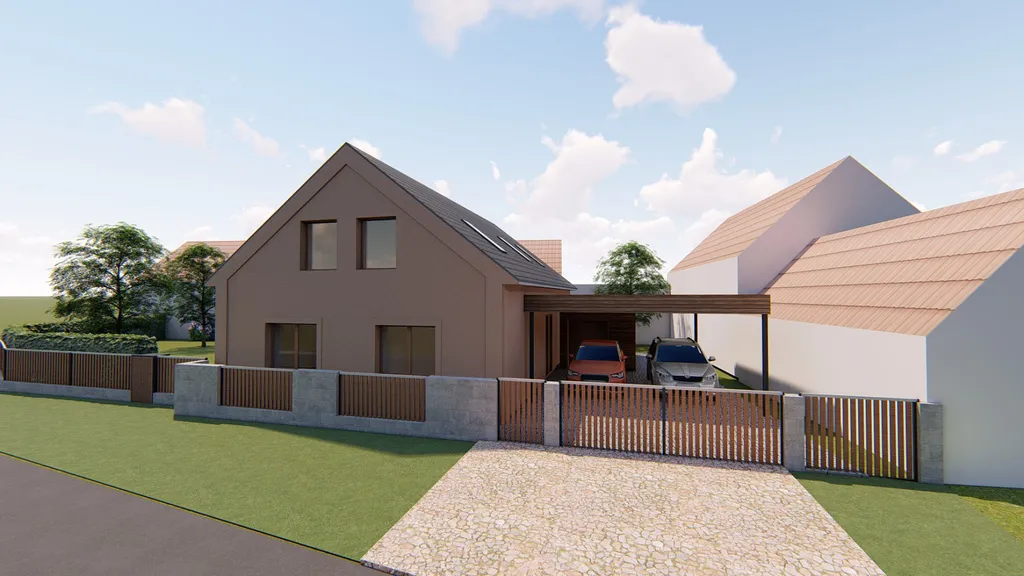 Architektonická koncepce dodává exteriéru a interiéru moderní i tradiční prvky, což ocení milovníci designu. Dům je postaven ze smíšeného zdiva a tvárnic, se zateplením (šedý polystyren 120 mm), s důrazem na kvalitu použitých materiálů a provedených prací. Dům je napojen na obecní vodovod, kanalizaci, elektřinu, plyn a O2 optickou síť. Vytápění a ohřev TUV zajišťuje plynový kotel. Jako příjemný doplněk je možné instalovat krbová kamna. Vytápění je kompletně řešeno jako podlahové, díky čemuž má dům velmi nízké provozní náklady - energetická třída B (velmi úsporná nemovitost).