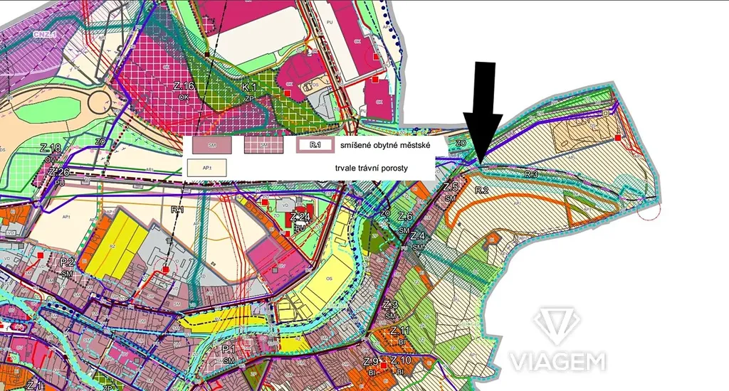 Pozemky jsou z části 3.200 m2 návrh na smíšené městské - bydlení v bytových a obytných domech. Dají se zde, výšková hladina 4 nadzemní podlaží.