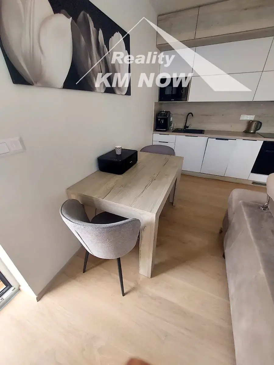 Ve výhradním zastoupení majitele nabízíme k pronájmu nadstandardní plně zařízený byt 2+kk o výměře 59,3 m2, umístěný ve 3. podlaží novostavby bytového domu v Kroměříži. Byt disponuje prostorným obývacím pokojem s kompletně vybavenou kuchyňskou linkou (horkovzdušná trouba, mikrovnlná trouba, indukční varná deska, digestoř, myčka nádobí, chladnička s mrazákem) a přímým vstupem na terasu (5,2 m2) s posezením. Samostatný pokoj vybaven vestavnými skříněmi a dvoulůžkovou postelí. Koupelna osazena sprchovým koutem. Samostatné WC s menším umyvadlem. Součástí bytu je prostorná vstupní chodba a šatní prostor. V bytě jsou bezpečnostní vstupní dveře. Součástí bytu je i sklep v přízemní části budovy. Forma vytápění a ohřevu vody za pomocí centrální kotelny v domě. V domě je výtah. Pro více informací a prohlídku neváhejte kontaktovat makléře. K dispozici od 1.února 2026.