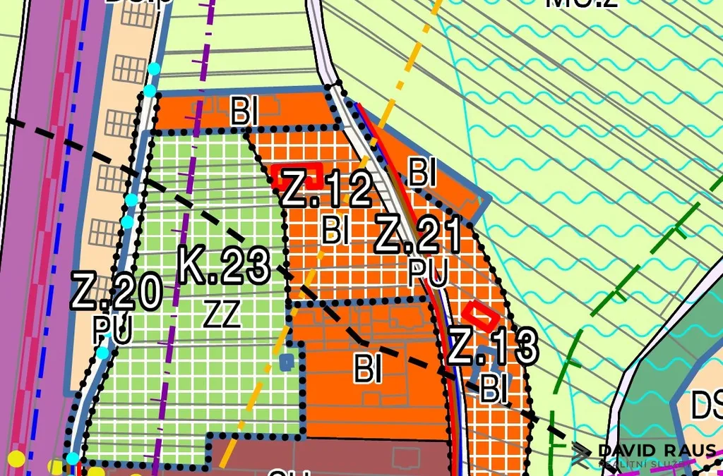 Podle územního plánu města Rajhrad je pozemek zařazen do plochy BI Z12 – bydlení individuální. Tato zóna je určena především pro nízkopodlažní rodinnou zástavbu s důrazem na klidné a esteticky sjednocené prostředí.
