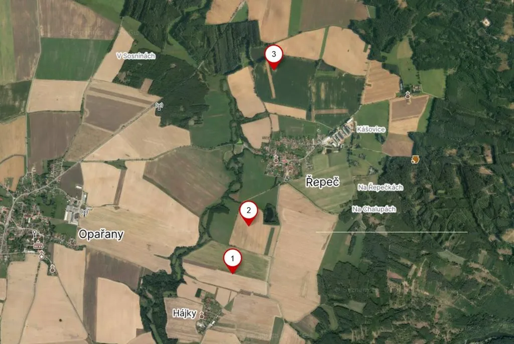 Pozemky se nacházejí v klidné lokalitě obce Řepeč, vhodné pro zemědělské využití nebo dlouhodobou investici.