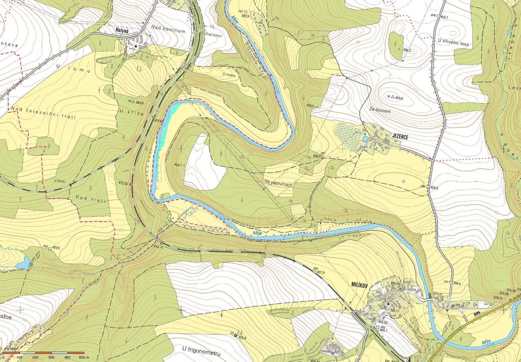 Nabízíme k prodeji spoluvlastnický podíl ve výši id. 1/2 na pozemku o výměře 4028 m2 v katastrálním území Jezerce (část obce Stříbro, okres Tachov, Plzeňský kraj). Výše výměry id. 1/2 činí 2014 m2. Pozemek je v katastru veden jako vodní plocha, nicméně aktuálně se jedná o louku, která se nachází v těsné blízkosti řeky Mže. Z hlediska současně platného územního plánu je plocha vyšleněna jako plocha smíšená nezastavěného území.