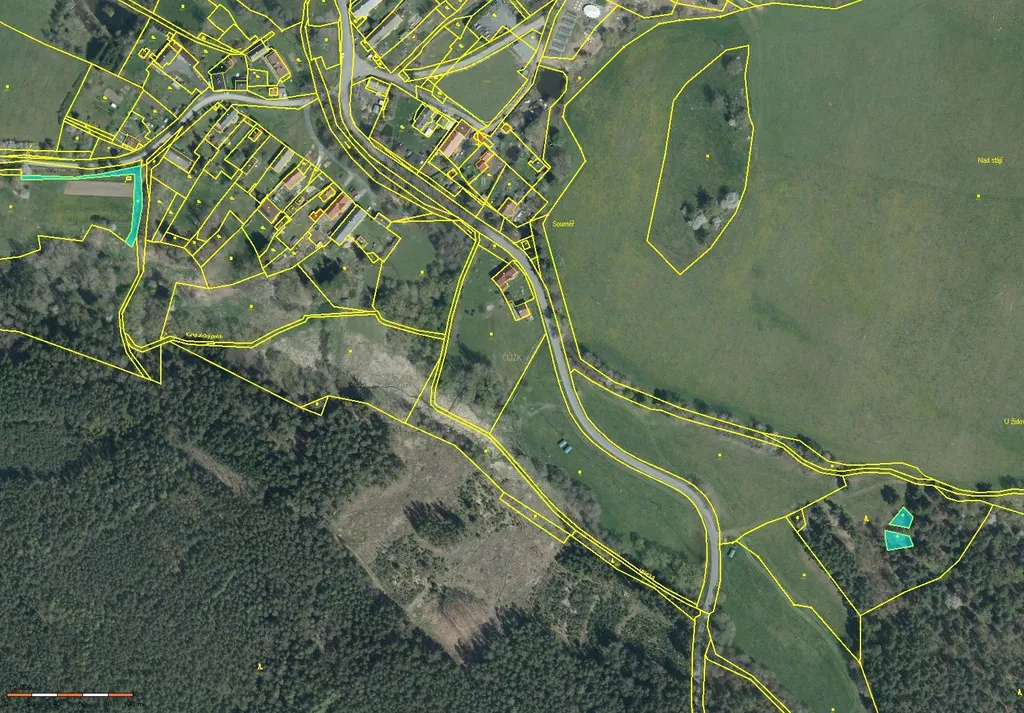 Nabízíme k prodeji podíl ve výši id. 1/2 na souboru šesti pozemků o celkové výměře 1667 m2 (výše podílu id. 1/2 je 833,5 m2) v katastrálním území Souměř (obec Stráž, okres Tachov, Plzeňský kraj). Parcely jsou roztroušené, převážně vedené jako ostatní plocha (1074 m2) a trvalý travní porost (593 m2). Pozemky nejsou obhospodařovány. Prioritou je prodej jako celek.