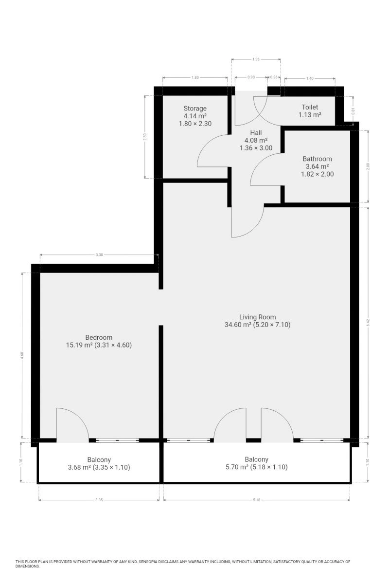 Samostatný pokoj je vybaven manželskou postelí, úložným prostorem a také přímým vstupem na balkon. Koupelna disponuje vanou, umyvadlem a pračkou, toaleta je umístěna samostatně. Součástí bytu je rovněž praktická úložná místnost.