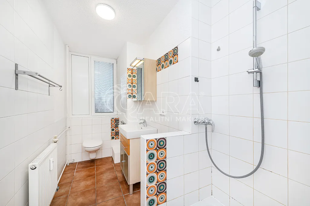 Byt je po rekonstrukci. Je vybaven novou kuchyňskou linkou se sklokeramickou varnou deskou, troubou a vestavnou mikrovlnkou. V lince je ponechán prostor pro nízkou ledničku. Jádro je zděné, toaleta spojená s koupelnou se sprchovým koutem disponuje oknem, zajišťující dostatek denního světla. Vytápění a ohřev vody centrální z vlastní plynové kotelny. Plastová okna. Na podlahách je dlažba a v obytných místnostech koberec v dobrém stavu. Byt je vymalován a pečlivě uklizen.