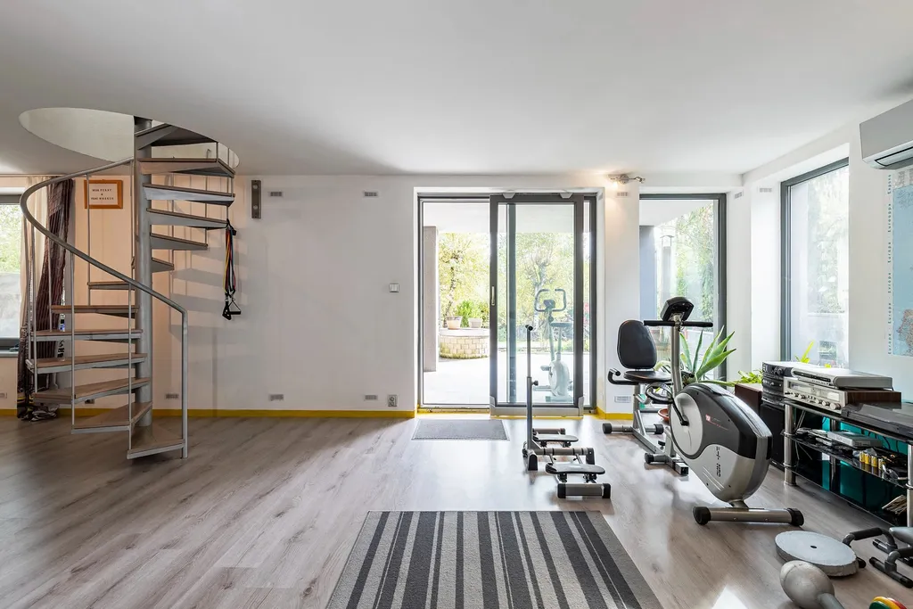 Pokud rádi cvičíte a relaxujete, to vše naleznete v přízemí, infrasauna, prostor pro posilovnu, sklípek, a opět navazující terasa, kde můžete umístit vířivku, nebo vedle domu udělat výtah, na to vše se zkrátka při realizaci myslelo.