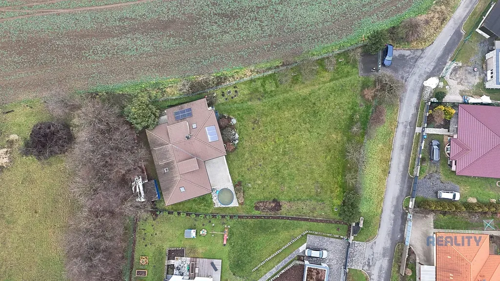 Dům stojí na krásném, pečlivě udržovaném pozemku o rozloze 1200 m², odkud se otevírá nerušený výhled do okolní přírody. Nachází se na konci příjezdové cesty, což zaručuje naprosté soukromí a klid – ideální místo pro ty, kteří hledají harmonické bydlení v blízkosti přírody, ale zároveň potřebují rychlé spojení s městem.