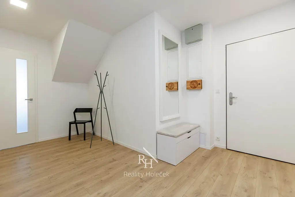 Přízemí je připravené pro společný rodinný život – velký obývák s kuchyní je srdcem bytu a přirozeným centrem rodiny. Pracujete na home office? Pak Vám přijde vhod pracovna, která může posloužit i jako pokoj pro hosty. V patře pak najdete soukromé pokoje, druhou koupelnu a šatnu, kterou jistě ocení Vaše drahá polovička.