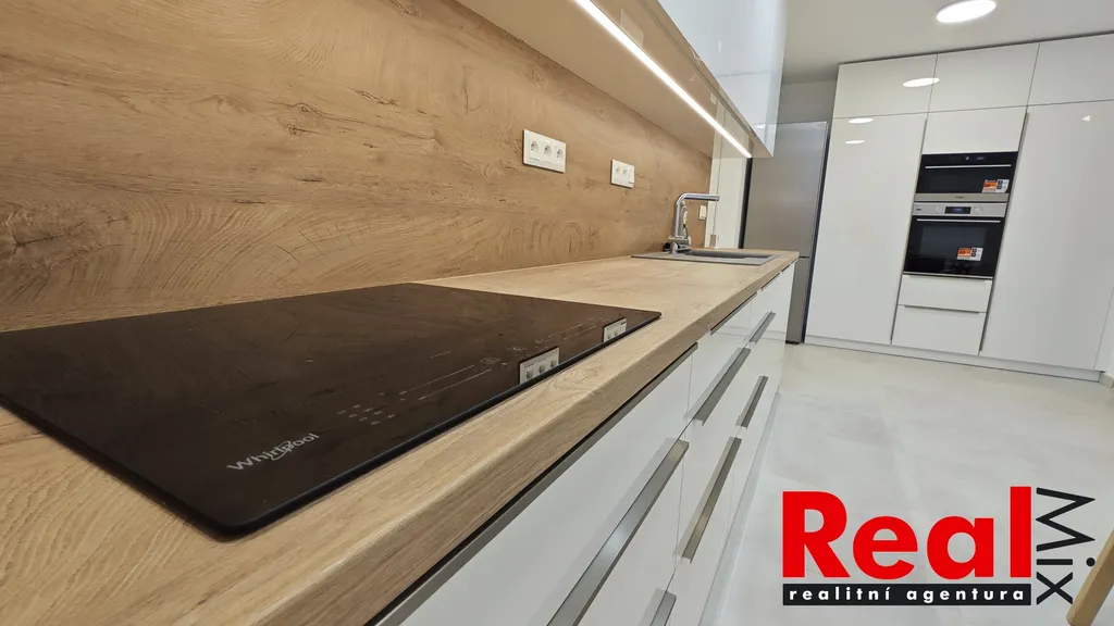 Bytová jednotka je vybavená - nová KL vč. spotřebičů (elektrická multifunkční a mikrovlnná trouba, indukční varná deska, myčka na nádobí (vše zn. Whirlpool), digestoř, lednička s mrazákem zn. Liebherr, jídelní stůl, 4x židle, předsíňová sestava (botník, věšák), v ložnici manželská postel (bez matrací), noční stolky, komoda, v šatně regálový systém, v oknech jsou žaluzie a sítě.