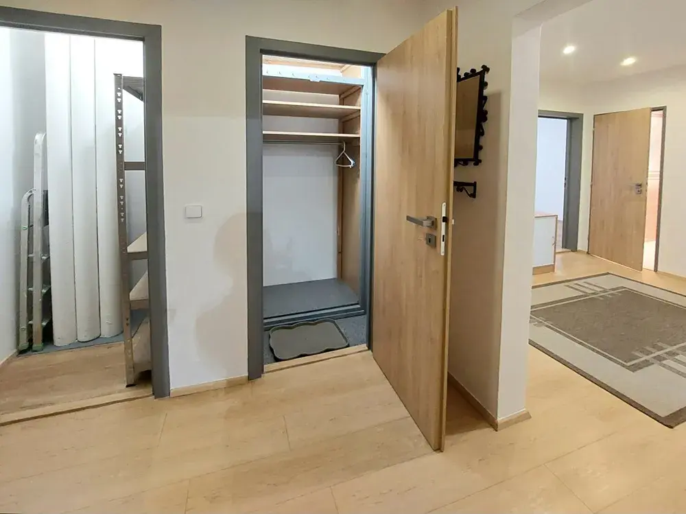 Bytová jednotka se nabízí nezařízená - je zde pouze nová kuchyňská linka, plynová varná deska, horkovzdušná trouba, digestoř, lednice s mrazničkou, vestavěná myčka nádobí, jídelní stůl + židle, věšáková stěna s botníkem v předsíni, policové díly v obou komorách.