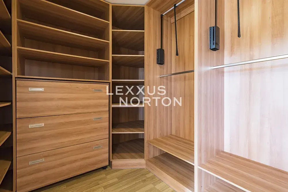 Tento světlý nezařízený dům k pronájmu dispozičně nabízí vstupní halu, obývací pokoj s krbem a samostatným kuchyňským koutem, 4 ložnice, 2 koupelny, samostatnou toaletu, pracovnu, šatnu a komoru. K domu náleží balkon, terasa a prostorná zahrada s bazénem. K domu náleží garážové stání, fotovoltaika a tepelné čerpadlo, které vám ušetří měsíční poplatky.