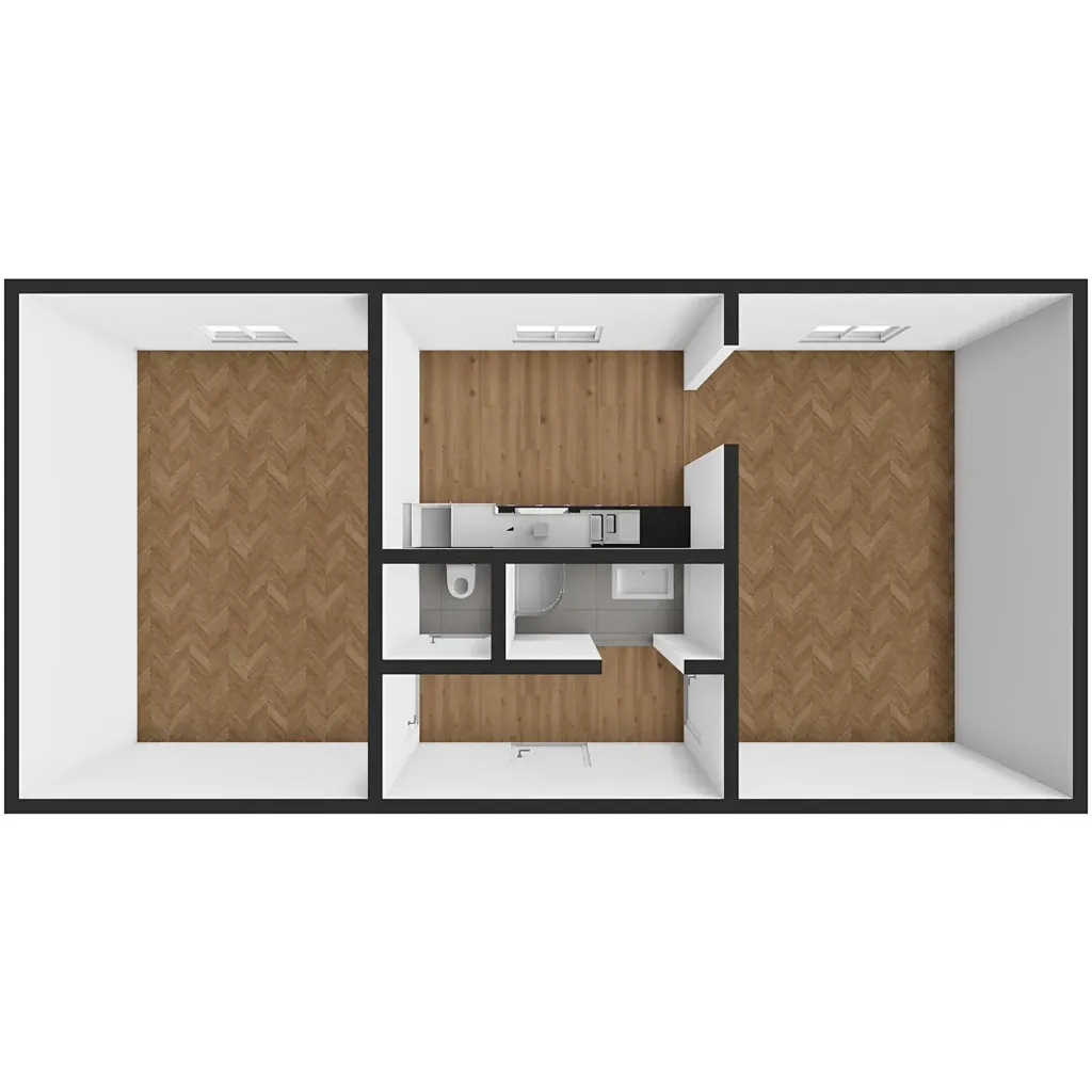 Dispozice bytu je velmi praktická – všechny pokoje mají samostatný vstup z chodby, nejsou průchozí a zajišťují tak dostatek soukromí.