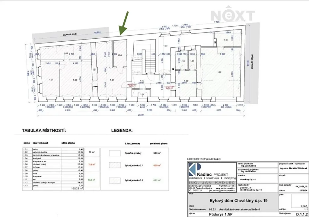 Dům má tři nadzemní podlaží: 1. NP (přízemí), 2. NP (1. patro), 3. NP (obytné podkroví). Celkem je v domě šest bytových jednotek. Dům prošel kompletní rekonstrukcí a všechny byty byly plně zrekonstruovány. Objekt je navíc celý podsklepený, takže nabízí dostatek úložného prostoru pro obyvatele.