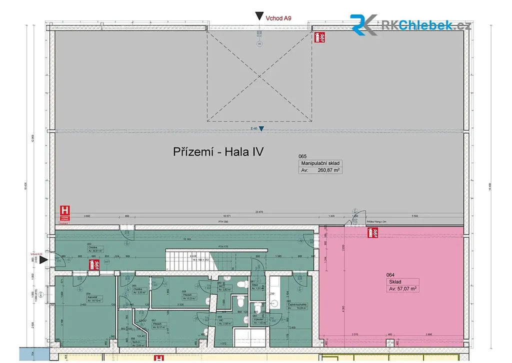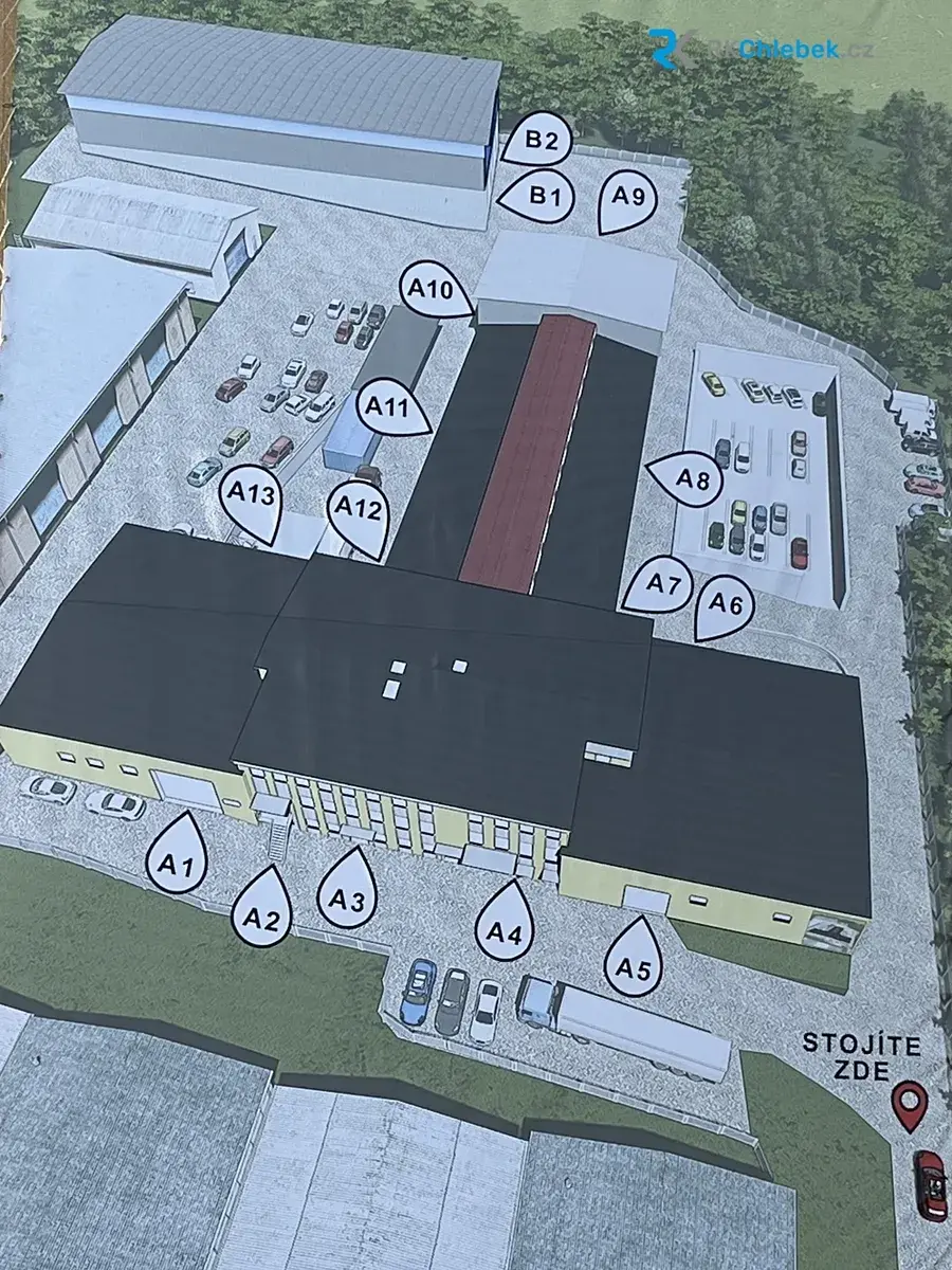 • skladové kóje v hale B (vstup B2) – od 48 m² do 447 m² ² (cena od 120 Kč/ m² měsíčně + 1000 Kč služby)