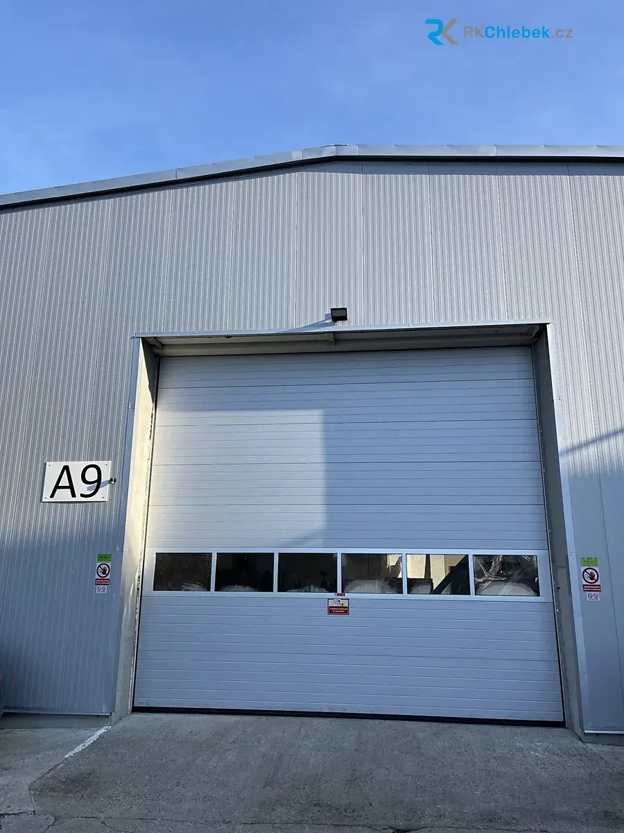 • sekční průmyslová vrata 6,0 × 5,2 m (vjezd kamionu – A9)