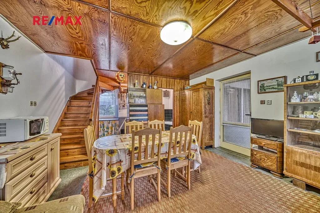 Dovolujeme si Vám nabídnout k prodeji rodinný dům využívaný k rekreaci, nacházející se v klidné obci Vilémovice u Ledče nad Sázavou. Cihlový, dvoupodlažní dům je situován na pozemku o celkové výměře 956 m², který je celý oplocený a poskytuje dostatek soukromí. Nemovitost je vhodná nejen k rekreačnímu využití, ale také k trvalému bydlení, případně ke kombinaci obou možností. Dům je v původním stavu a je vhodný k rekonstrukci dle vlastních představ, ať už pro rekreační využití, nebo pro plnohodnotné trvalé bydlení, s možností vytvořit si příjemné zázemí v klidném prostředí obklopeném přírodou. V přízemí se nachází pokoj s kuchyňským koutem o výměře 22,97 m², další pokoj o velikosti 8,42 m², koupelna s vanou a samostatné WC s umyvadlem. V patře jsou tři samostatné pokoje o výměrách 17,68 m², 12,53 m² a 8,58 m², které nabízejí dostatek prostoru pro rodinné bydlení. Nemovitost je částečně podsklepená, sklep má přibližně 21 m². Dům je vybaven plastovými okny, je zde zavedena elektřina 230/400 V a ohřev vody je řešen bojlerem. Vytápění domu je zajištěno plynovými kamny typu WAW umístěnými v každém patře a dále kamny na pevná paliva (komín není vyvložkovaný). Odpad je řešen septikem o objemu cca 1–2 m³. Na pozemku se nachází samostatně stojící garáž a zahradní domek. Součástí nemovitosti je udržovaná, rovinatá zahrada o výměře 878 m², převážně travnatá, s několika stromy a keři, ideální pro odpočinek i rodinné aktivity. Obec Vilémovice nabízí klidné bydlení v přírodě s dobrou dostupností do Ledče nad Sázavou, kde je kompletní občanská vybavenost, a je dostupná jak autem, tak autobusovou dopravou. Nemovitost představuje zajímavou příležitost pro ty, kteří hledají místo pro bydlení či rekreaci s možností rekonstrukce dle vlastních potřeb.