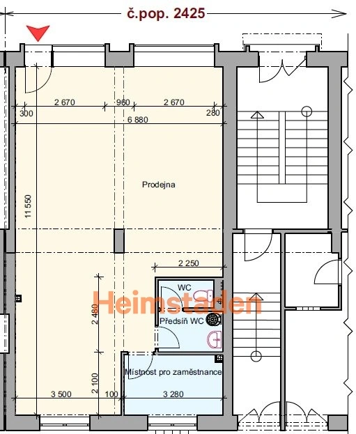 Velkorysá plocha vhodná jako prodejna nebo kancelář s možností rozdělení na několik menších místností.