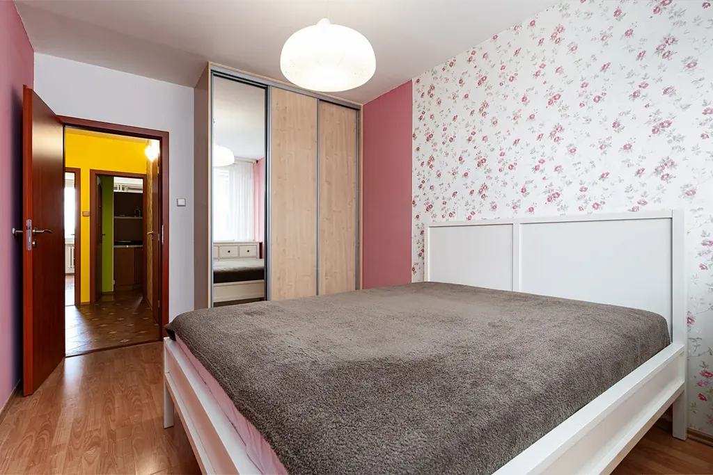 Dispozice zahrnuje dva samostatné neprůchozí pokoje, obývací pokoj, kuchyň s jídelním koutem, prostornou chodbu, komoru, koupelnu se sprchovým koutem a WC.
