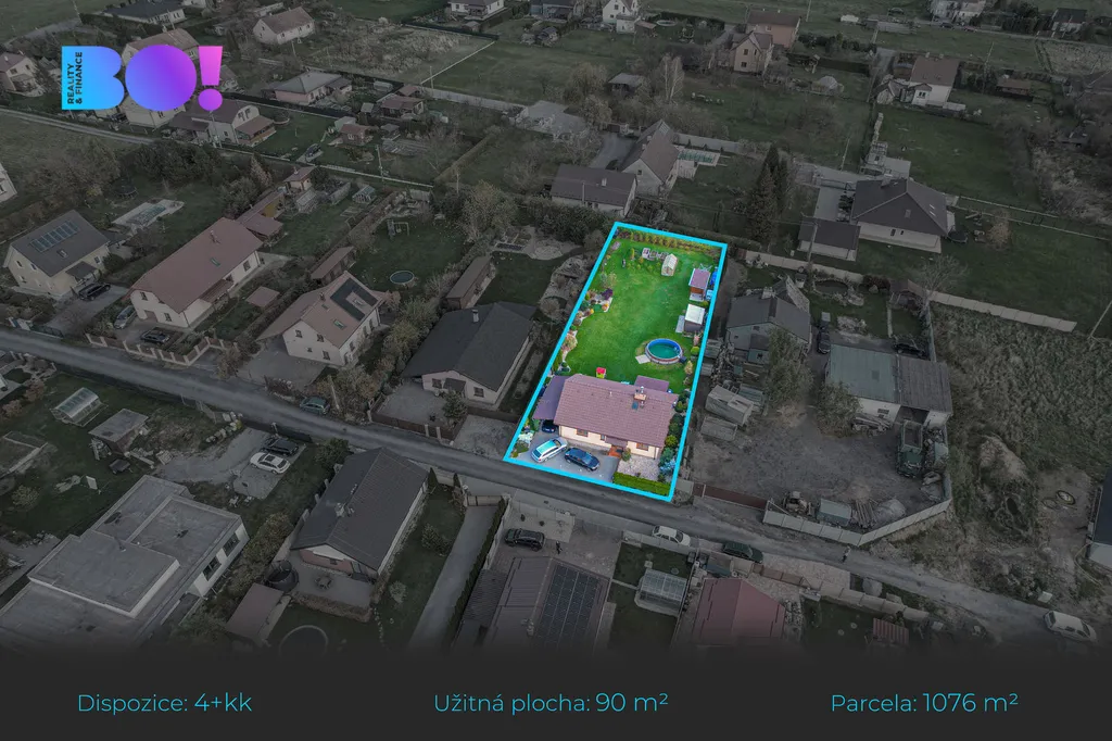 Jedná se o přízemní rodinný dům o dispozici 4+kk s užitnou plochou 90 m², který se nachází na prostorném pozemku o velikosti 1 076 m². Zahrada je pečlivě udržovaná a rozdělena na okrasnou a užitnou část, nechybí zde skleník, bazén s filtrací ani terasa s posezením, odkud je krásný výhled na celý pozemek – ideální místo pro relax i rodinné setkávání.