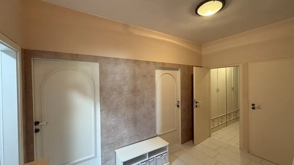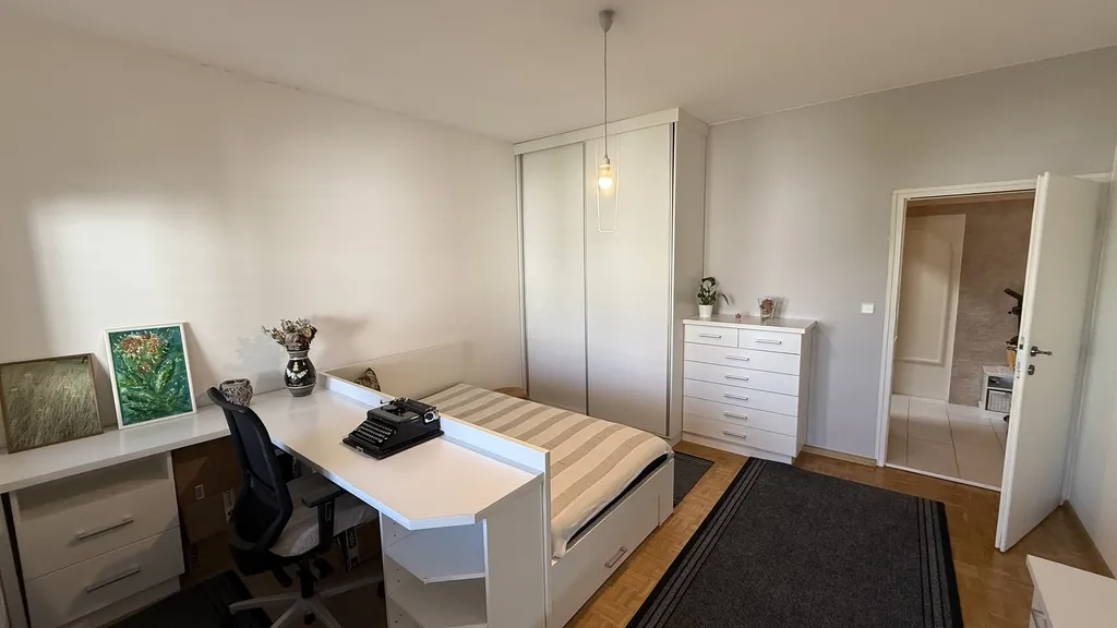 Byt ve 2.NP je citlivě členěn do jednotlivých obytných zón, kdy z ústřední vstupní chodby se lze dostat do jednotlivých místností, moderní kuchyně s jídelnou ( 19 m2) s výhledem do zahrady a vnitrobloku, velkou terasou se vstupem z jídelny a dětského pokoje (17 m2), na opačné straně pak do stylové ložnice ( 22 m2) a obývacího pokoje (24 m2), koupelny se srpchovým koutem, samostného WC a šatny.