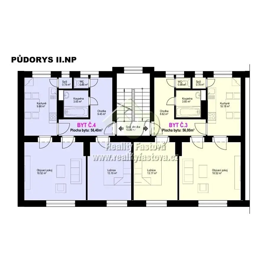 V nájemním domě je celkem 8 bytových jednotek, 6 bytů o vel. 2+1, 2 podkrovní byty o vel. 2+kk. Každý byt má komoru umístěnou v bytě.